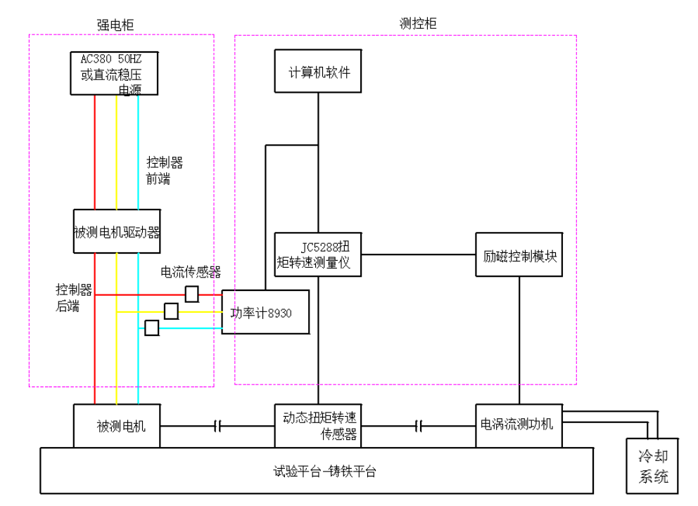 智能型电机综合测试系统是一款专为交流电机性能评估与研发测试设计的高精度、多功能自动化测试平台。系统采用先进的电涡流测功机作为负载,结合高精度传感器、工控计算机与专业测试软件,实现对电机的扭矩、转速、功率、电压、电流、温度、电阻等关键参数的全面、实时、自动化测量与分析。