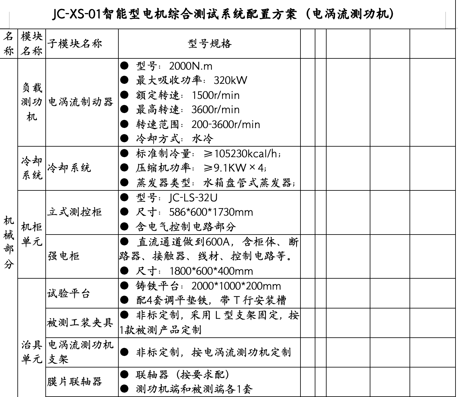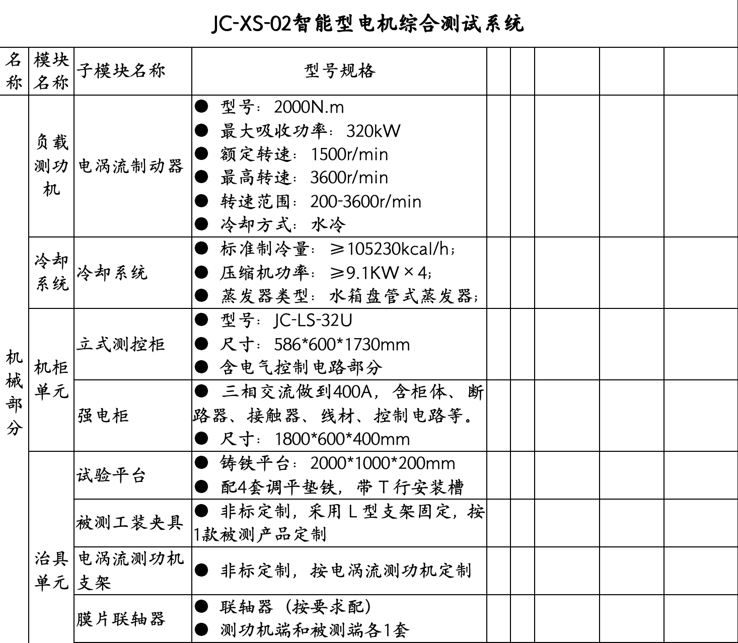 JC-XS-01智能型电机综合测试系统集成2000N.m大扭矩电涡流测功机,具备高精度测量(转矩±0.4%,转速±0.2% FS)与快速动态响应能力。系统支持全自动测试与数据分析,一次接线即可完成多项性能评估,大幅提升电机出厂检验效率与质量控制水平。